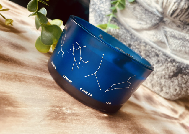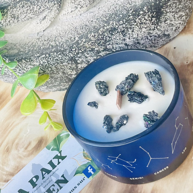 Puisez dans l'énergie intuitive et nourricière du Cancer avec cette bougie en cristal du zodiaque de fabrication artisanale ,cire de Soja 22H de combustion