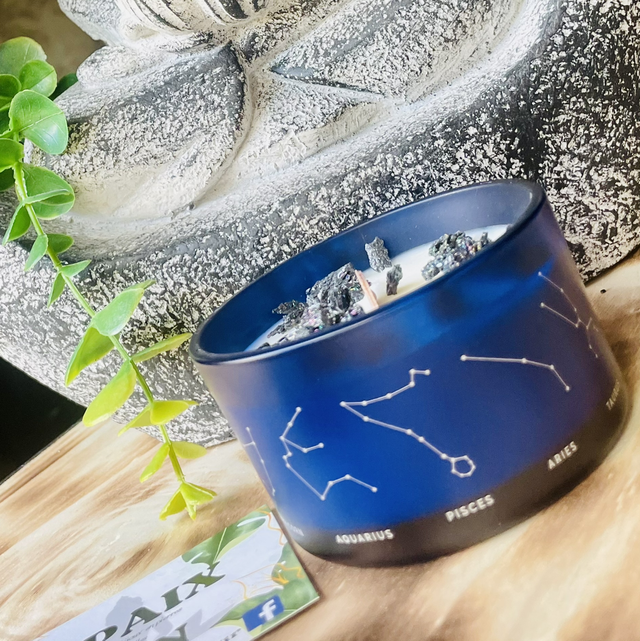 Plongez dans le monde rêveur et intuitif des Poissons avec cette Bougie de Cristal du Zodiaque,fabrication artisanale,cire de soja,combustion 22H