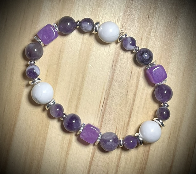Acquiert la patience et l'humilté avec notre bracelet soin PATIENCE composé d'Améthyste et de Howlite .