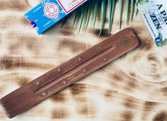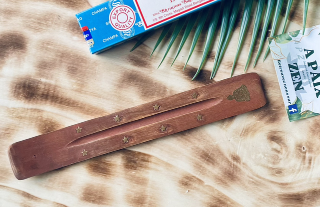 Porte Encens classique en bois de manguier ,2 motifs au choix bouddha ou Soleil ,la petite touche ZEn pour votre salon!
