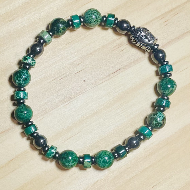Bracelet Pierres Naturelles ANT FATIGUE fait mains en Jaspe Impérial Vert et Acier Inoxydable.